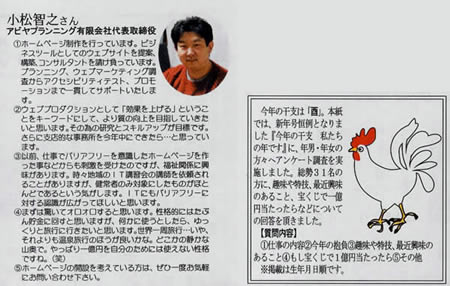 先日、群馬建設新聞からの取材を受けた件を記載しましたが、いつ掲載なのだろうとちょっとワクワクしていたりしたのですが、実は既に発行されていたようです。1月5日の記事です。その新聞を本日いただきました。無料で掲載させていただくのだから本当に有難いものです。また機会がありましたらよろしくお願いいたします。