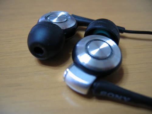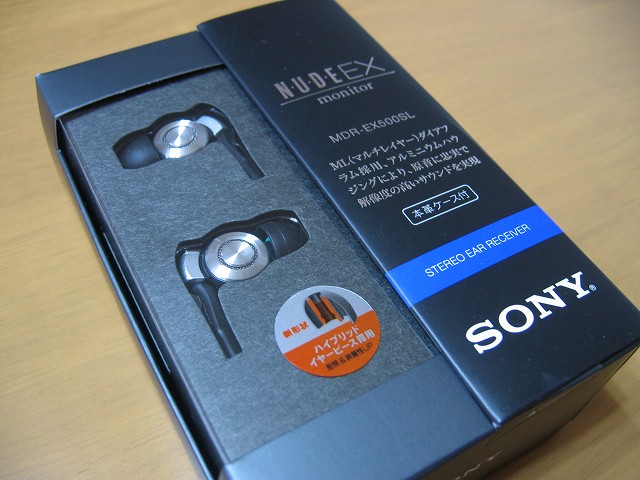 屋外でさすがにATH-AD500をかけるわけにはいかないので、それなりの音を出すカナル形イヤホンを探していたのですが、SONYのMDR-EX500SLがいいかな‥と。