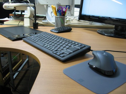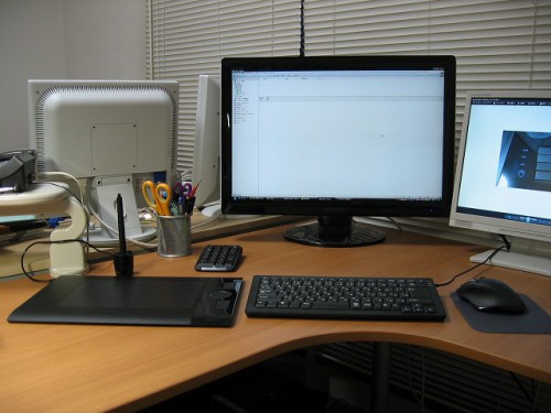 キーボードの左にマウス、さらにその左にタブレット‥これでは私の手の長さでは作業はできないです‥。
