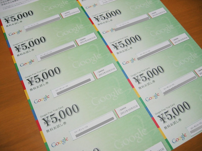 以前も書いたことあるかと思いますが、先日もGoogleアドワーズの無料お試し券が送られてきました。